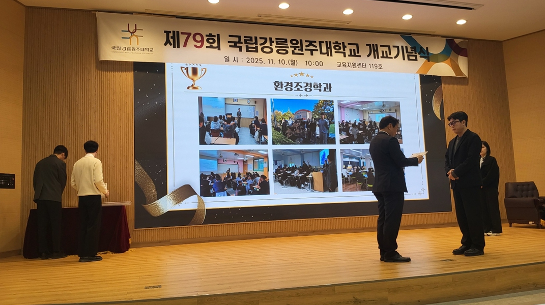 이번 인증은 제79회 국립강릉원주대학교 개교기념식(2025년 11월 11일)에서 박덕영 총장님으로부터 함광민 학과장님이 대표로 수여받았습니다.