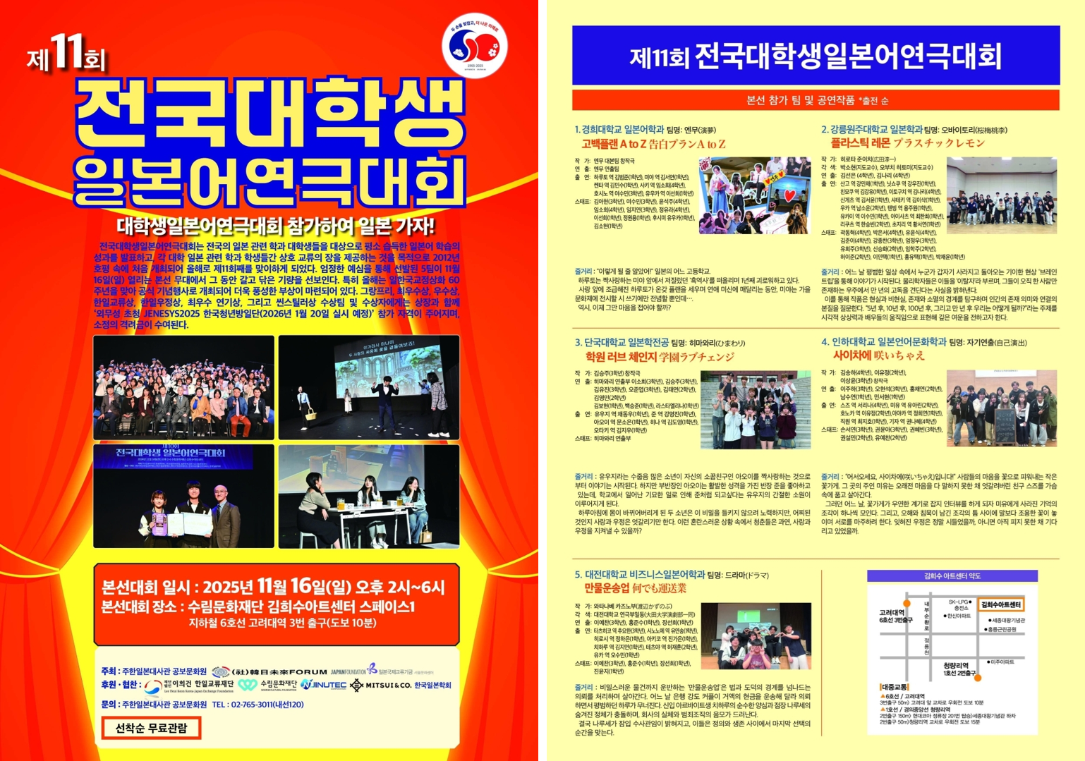 주한일본대사관 공보문화원 등이 주최한 <제11회 전국 대학생 일본어 연극대회> 본선(2025년 11월 16일)에서