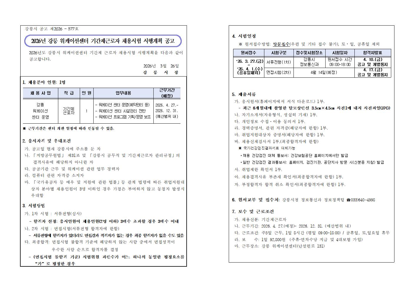 2026년 강릉 워케이션센터 기간제근로자 채용 공고.hwp