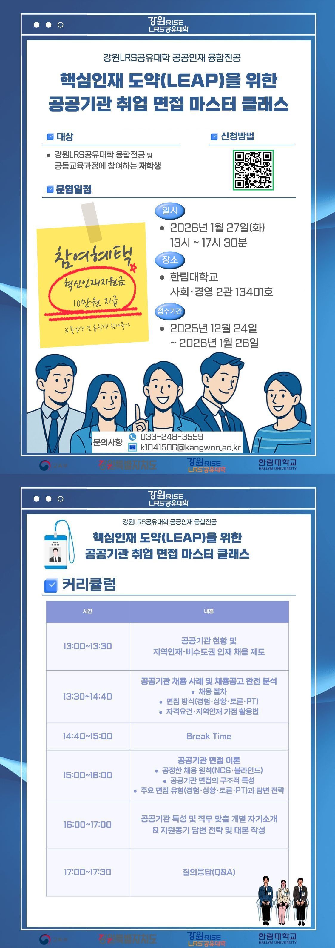 [강원LRS공유대학 공공인재융합전공] 핵심인재 도약(LEAP)을 위한 공공기관 취업 면접 마스터 클래스 비교과 프로그램 안내