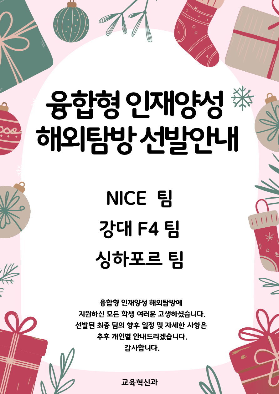 fnctId=bbs,fnctNo=1191 2025학년도 융합형 인재양성 해외탐방 최종선발 안내 작성일 2025.12.05 작성자 김경린 조회수 669 첨부파일 첨부파일이(가) 없습니다.