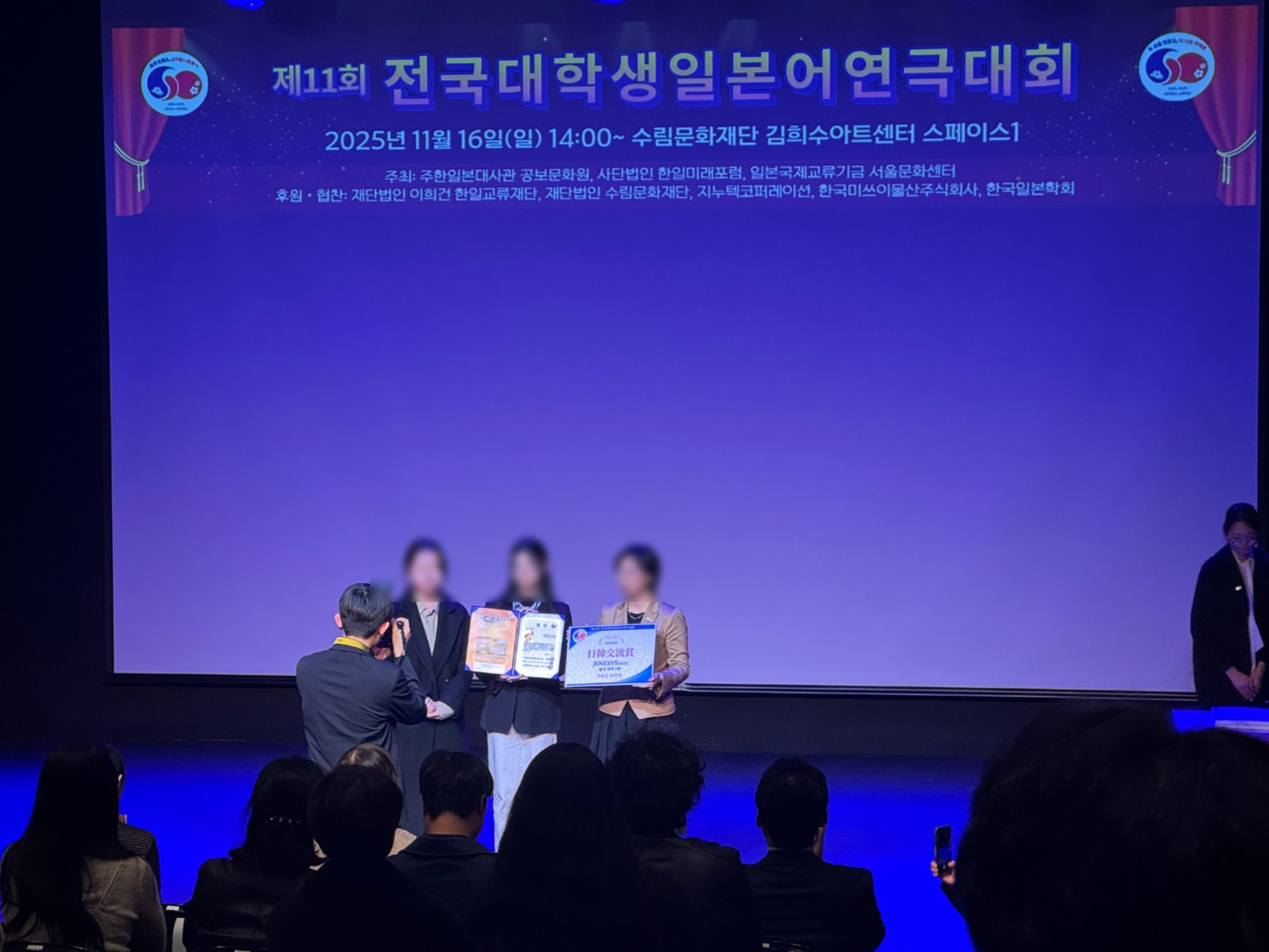fnctId=bbs,fnctNo=736 [행사] 2025 전국대학생일본어연극대회(한일교류상 수상) 글번호 328006 작성일 2026.02.26 작성자 안지성 조회수 681 첨부파일 첨부파일이(가) 없습니다.