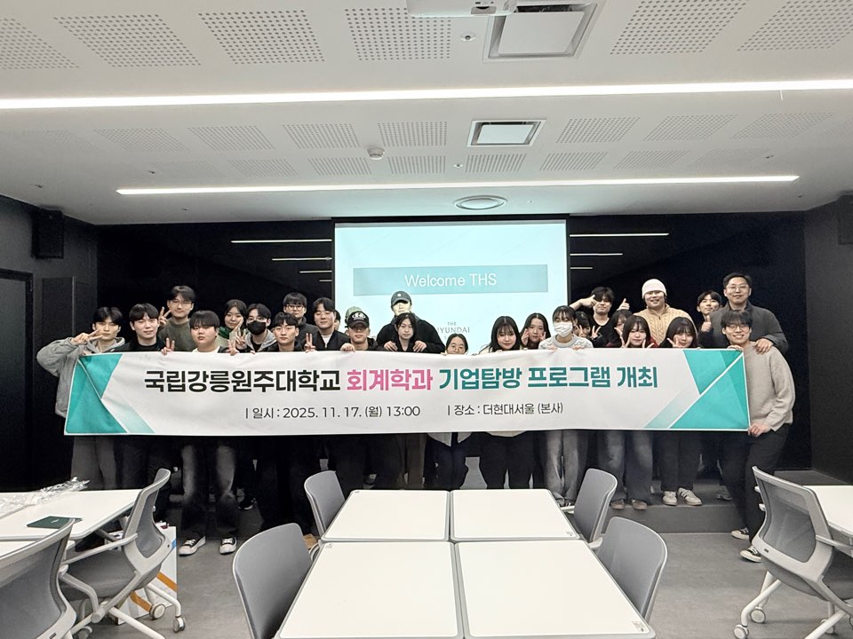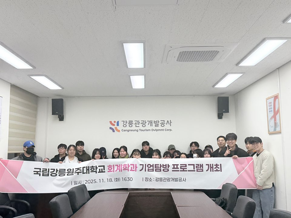 2025학년도 회계학과 기업탐방(강릉관광개발공사) 프로그램 개최회계학과에서 강릉관광개발공사 기업탐방 프로그램을 아래와 같이 개최하였습니다.1. 일시: 22025.11.24 -