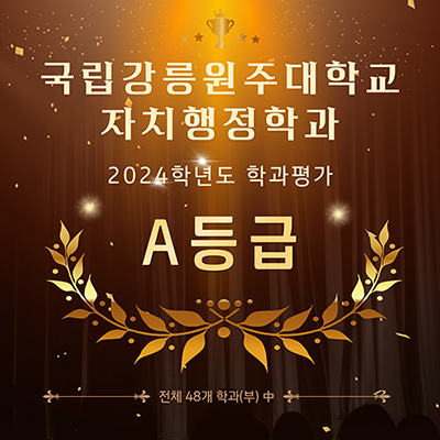 우리 자치행정학과는 국가와 지방발전의 선도적인 역할을 담당하는 공공부문 인재양성에 교육목표를 두고 있습니다. 특히 지방행정과 지역발전에서 중추적인 역할을 감당하는 인성과 역량을 갖춘 행정전문가 양성을 위해 최선을 다하고 있습니다. 선도적이며 차별화된 교육과정을 구축하고, 창의적이며 미래융합적인 교육방법을 적극적으로 활용하고 있습니다. 학생들의 미래를 위한 지속적인 고민과 혁신을 통해 교육과정을 개편하고 교육투자를 아끼지 않고 있습니다.이제 국립강릉원주대학교 자치행정