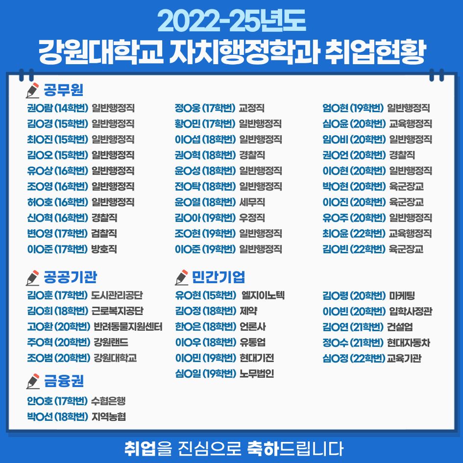 학과에서 공공리더로서의 비전을 구체화하고 소양과 역량을 키워나가기 바랍니다.